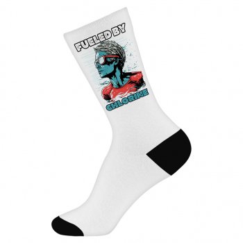 Fueled by Socks – Swimming Quotes Novelty Socks – Printed Crew Socks