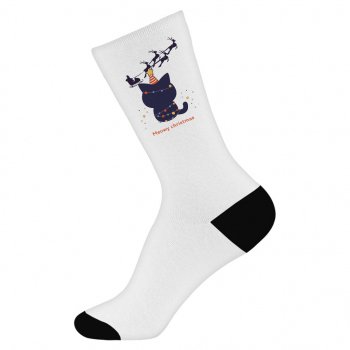 Meowy Christmas Socks – Black Cat Novelty Socks – Cute Cat Crew Socks
