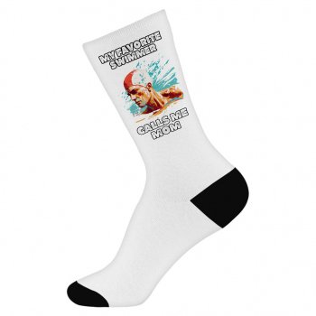 Swimmer Mom Socks – Retro Poster Novelty Socks – Quote Design Crew Socks