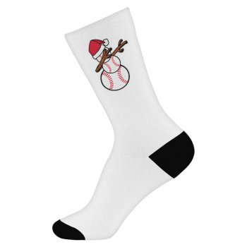 Baseball Snowman Socks – Christmas Novelty Socks – Sports Print Crew Socks