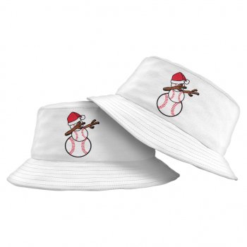 Baseball Snowman Bucket Hat – Christmas Hat – Sports Print Bucket Hat