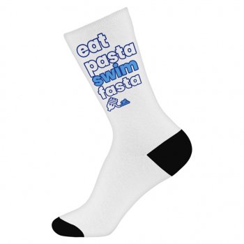 Eat Pasta Swim Fasta Socks – Funny Quotes Novelty Socks – Graphic Design Crew Socks
