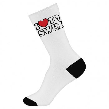 I Love to Swim Socks – Swimming Themed Novelty Socks – Quote Design Crew Socks