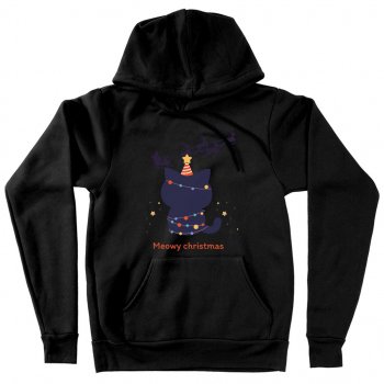 Meowy Christmas Hooded Sweatshirt – Black Cat Hoodie – Cute Cat Hoodie