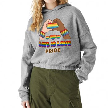 Love Is Love Pride Cinched Bottom Hoodie – Pride Heart Women’s Hoodie – Equality Hooded Sweatshirt