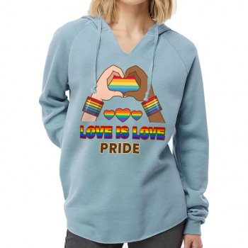 Love Is Love Pride California Wave Wash Hoodie – Pride Heart Hooded Sweatshirt – Equality Hoodie