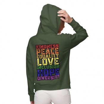 Peace Love Equality Women’s Zip Hoodie – Queer Hooded Sweatshirt – LGBTQIA Hoodie