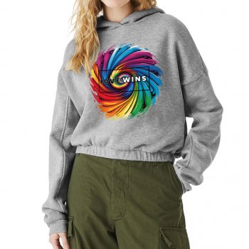 Love Wins Cinched Bottom Hoodie – Rainbow Women’s Hoodie – Graphic Design Hooded Sweatshirt