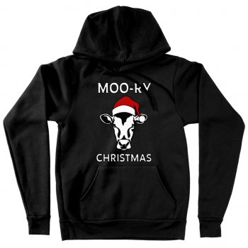 Moory Christmas Hooded Sweatshirt – Cute Cow Print Hoodie – Quote Design Hoodie
