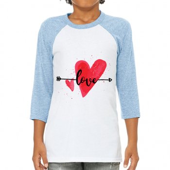 Love Arrow Kids’ Baseball T-Shirt – Red Heart 3/4 Sleeve T-Shirt – Cute Baseball Tee