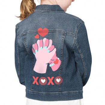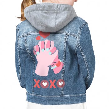 Xoxo Heart Hooded Denim Jacket for Kids – Xoxo Love Jean Jacket – Art Print Denim Jacket for Kids