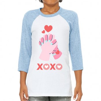 Xoxo Heart Kids’ Baseball T-Shirt – Xoxo Love 3/4 Sleeve T-Shirt – Art Print Baseball Tee