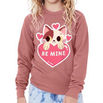 Be Mine Kids’ Raglan Sweatshirt – Cute Cat Sponge Fleece Sweatshirt – Quotes Printed Sweatshirt