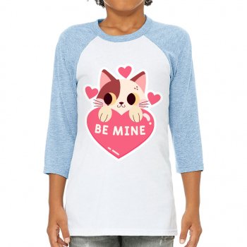Be Mine Kids’ Baseball T-Shirt – Cute Cat 3/4 Sleeve T-Shirt – Quotes Printed Baseball Tee
