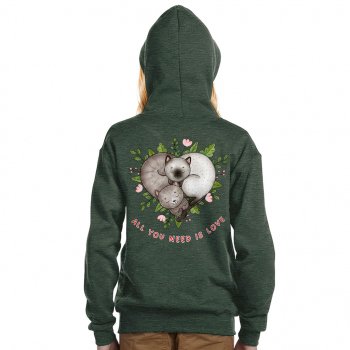 All You Need Is Love Kids’ Sponge Fleece Hoodie – Cat Heart Kids’ Hoodie – Quotes Hoodie for Kids