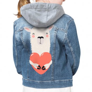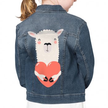 Alpaca Heart Kids’ Denim Jacket – Kawaii Jean Jacket – Printed Denim Jacket for Kids