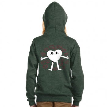 Sweet Heart Kids’ Full-Zip Hoodie – Cute Heart Hooded Sweatshirt – Printed Kids’ Hoodie