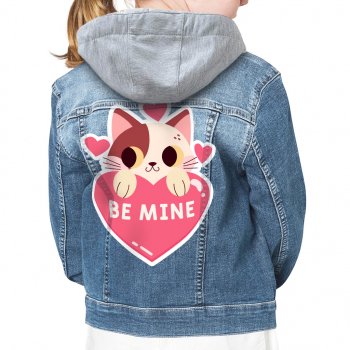 Be Mine Kids’ Denim Jacket – Cute Cat Jean Jacket – Quotes Printed Denim Jacket for Kids
