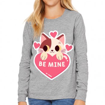 Be Mine Kids’ Long Sleeve T-Shirt – Cute Cat T-Shirt – Quotes Printed Long Sleeve Tee