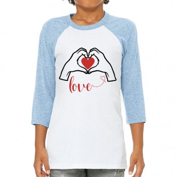 Finger Heart Kids’ Baseball T-Shirt – Love 3/4 Sleeve T-Shirt – Graphic Design Baseball Tee
