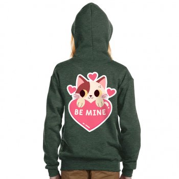 Be Mine Kids’ Full-Zip Hoodie – Cute Cat Hooded Sweatshirt – Quotes Printed Kids’ Hoodie