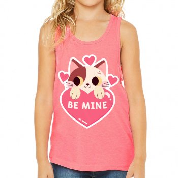 Be Mine Kids’ Jersey Tank – Cute Cat Sleeveless T-Shirt – Quotes Printed Kids’ Tank Top