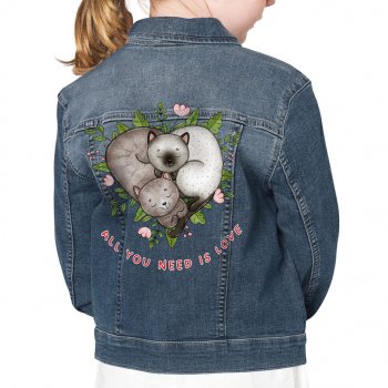 All You Need Is Love Kids’ Denim Jacket – Cat Heart Jean Jacket – Quotes Denim Jacket for Kids