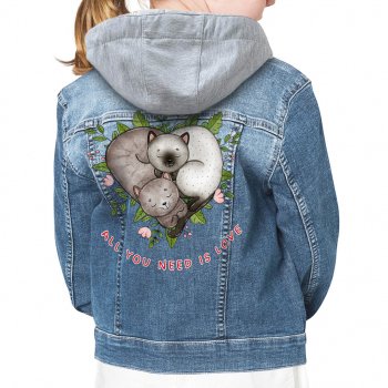All You Need Is Love Hooded Denim Jacket for Kids – Cat Heart Jean Jacket – Quotes Denim Jacket for Kids