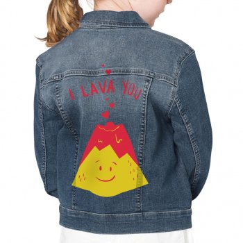 I Lava You Hooded Denim Jacket for Kids – Volcano Jean Jacket – Cute Quotes Denim Jacket for Kids