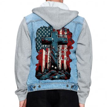 American Flag Men’s Denim Jacket – USA Jacket With Fleece Hoodie – Patriotic Jacket for Men