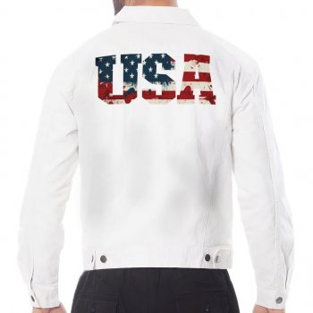 USA Patriot Men’s White Denim Jacket – United States Flag Denim Jacket for Men – Printed Denim Jacket