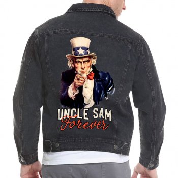 Uncle Sam Men’s Vintage Denim Jacket – USA Themed Black Denim Jacket – Art Print Jacket for Men