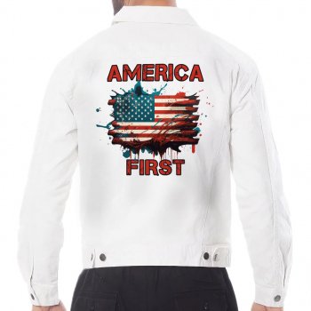 America First Men’s White Denim Jacket – United States Denim Jacket for Men – USA Patriot Denim Jacket