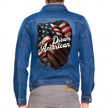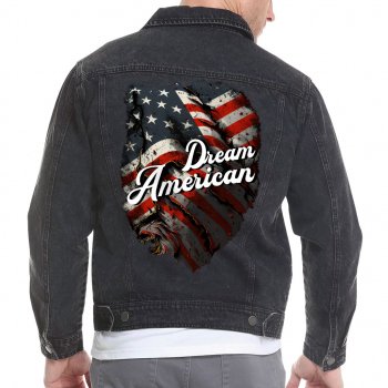 Dream American Light Washed Men’s Denim Jacket – Patriotic Denim Jacket – USA Flag Jacket for Men