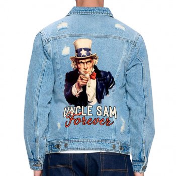 Uncle Sam Light Washed Men’s Denim Jacket – USA Themed Denim Jacket – Art Print Jacket for Men