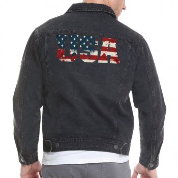 USA Patriot Men’s Vintage Denim Jacket – United States Flag Black Denim Jacket – Printed Jacket for Men