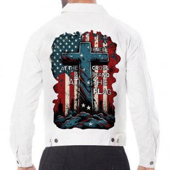 American Flag Men’s White Denim Jacket – USA Denim Jacket for Men – Patriotic Denim Jacket