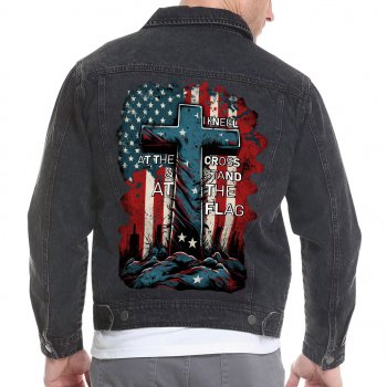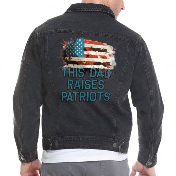 Patriotic Vibes Men’s Vintage Denim Jacket – American Flag Black Denim Jacket – Quotes Printed Jacket for Men