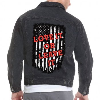 Love It Or Leave It Men’s Vintage Denim Jacket – American Patriot Black Denim Jacket – Quote Design Jacket for Men