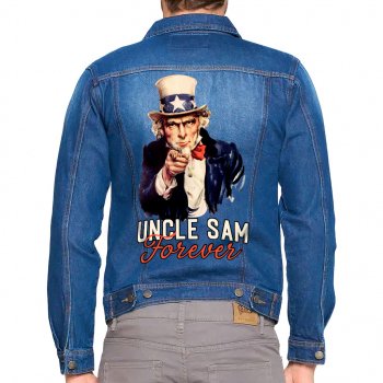 Uncle Sam Dark Washed Men’s Denim Jacket – USA Themed Denim Jacket – Art Print Jacket for Men