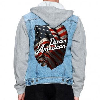 Dream American Men’s Denim Jacket – Patriotic Jacket With Fleece Hoodie – USA Flag Jacket for Men
