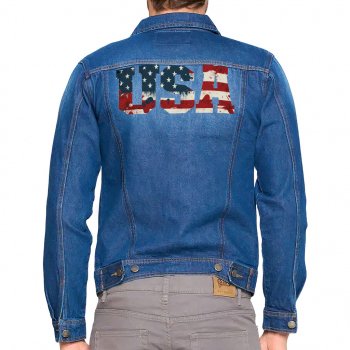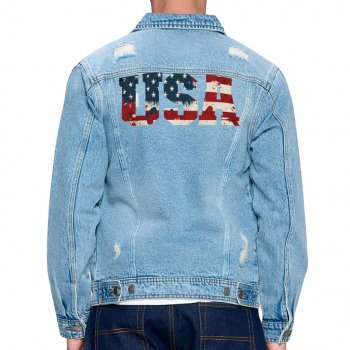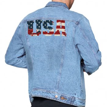 USA Patriot Light Washed Men’s Denim Jacket – United States Flag Denim Jacket – Printed Jacket for Men