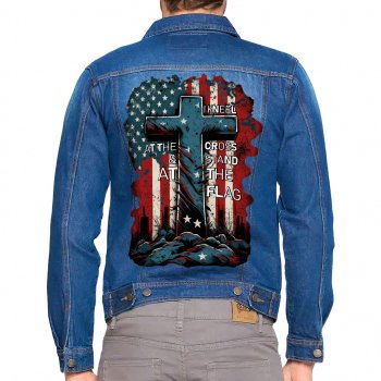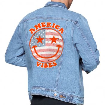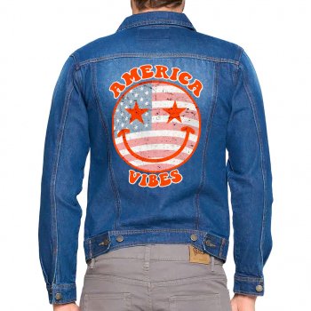 Patriotic Vibes Light Washed Men’s Denim Jacket – American Flag Denim Jacket – Quotes Printed Jacket for Men