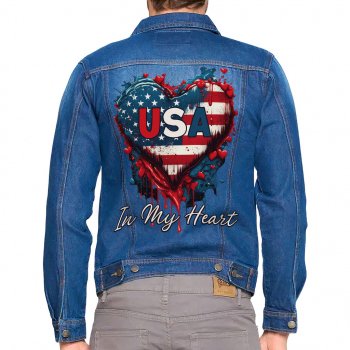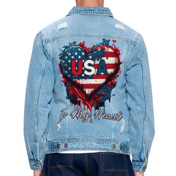 In My Heart Light Washed Men’s Denim Jacket – USA Patriot Denim Jacket – Printed Jacket for Men