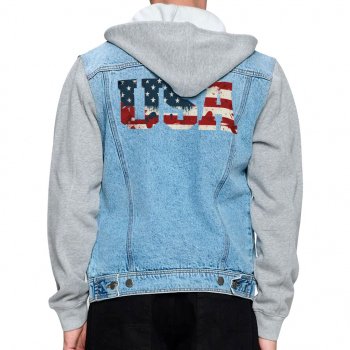 USA Patriot Men’s Denim Jacket – United States Flag Jacket With Fleece Hoodie – Printed Jacket for Men
