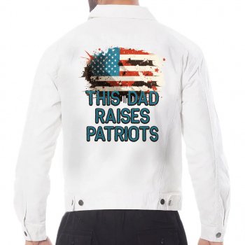 Patriotic Vibes Men’s White Denim Jacket – American Flag Denim Jacket for Men – Quotes Printed Denim Jacket