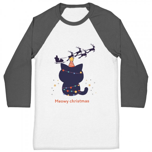 Meowy Christmas Heavy Cotton T-Shirt – Black Cat Tee Shirt – Cute Cat T-Shirt