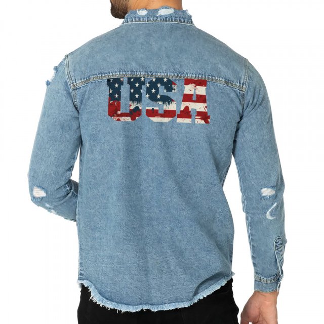 Patriotic Vibes Men’s Denim Shirt with Distressed