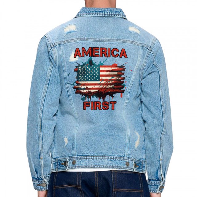Patriotic Vibes Men’s Vintage Denim Shirt Distressed