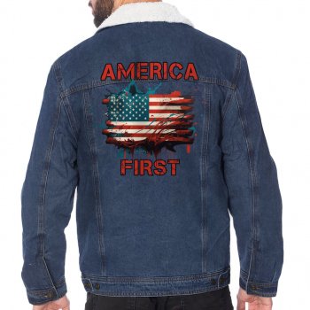 America First Men’s Sherpa-Lined Denim Jacket – United States Denim Jacket – USA Patriot Jacket for Men